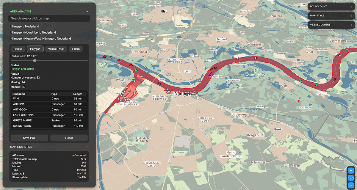 AISAREA.COM analyzes maritime traffic based on a user defined area.